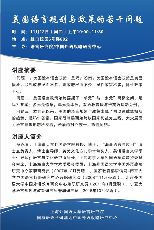 主题:美国语言规划与政策的若干问题