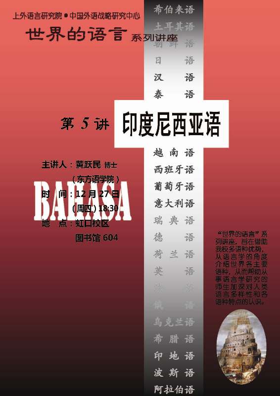 “世界的语言”系列讲座,旨在借助我校多语种优势,从语言学的角度介绍世界各主要语种,从而帮助从事语言学研究的师生加深对人类语言多样性和各语种特点的认识。欢迎各位老师同学前来参加!