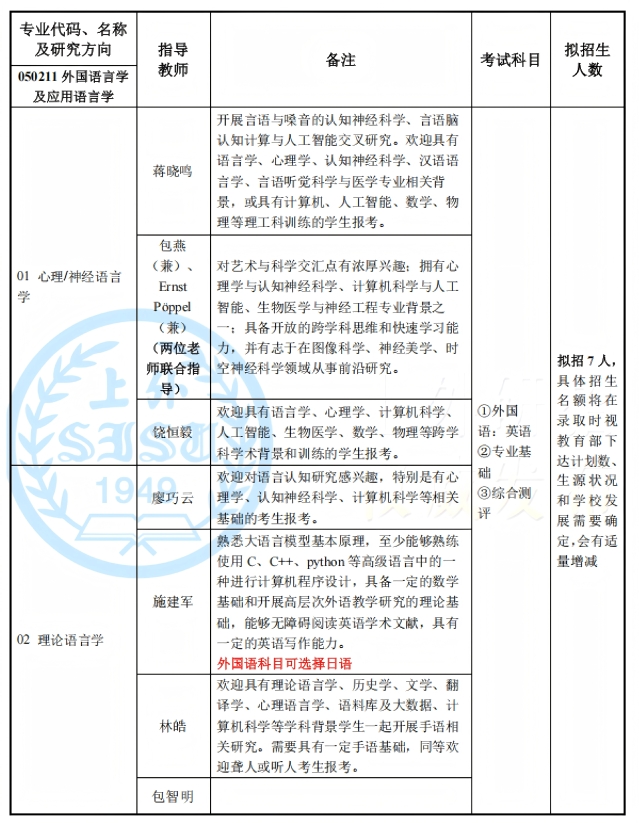 上海外国语大学语言科学研究院博士研究生报考信息简表.xlsx