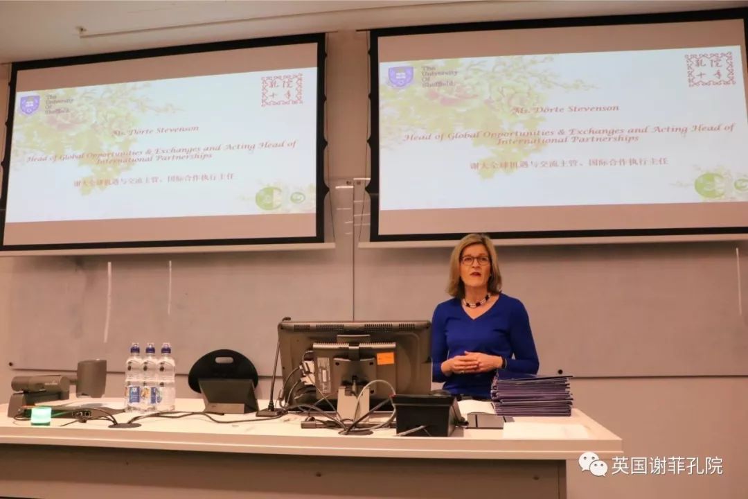 谢菲尔德大学全球机遇与交流主管、国际合作执行主任多蒂·史蒂文生(Dörte Stevenson)女士致辞