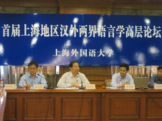 由上海外国语大学语言研究院与《外国语》编辑部联合举办的“首届上海地区汉外两界语言学高层论坛”于5月19日下午在虹口校区会议中心英伦厅举行。来自上海各高校汉语学界和外语学界的20余位著名学者应邀出席了本论坛。上海外国语大学校长曹德明出席会议。