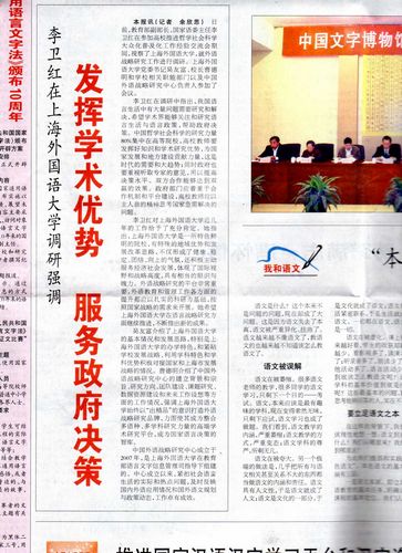 《语言文字报》头版头条报道李卫红副部长对上外的视察,充分肯定我校工作