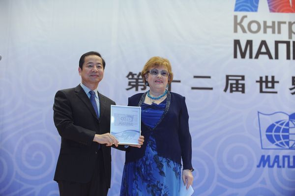 闭幕式由上海外国语大学俄语系主任章自力主持。首先,世界俄语学会会长维尔比茨卡娅登台做本次大会学术总结报告。她说,第十二届世界俄语大会共设15个专题,举行了35场学术讨论会,此外还举行了6场圆桌会议。与会者就语言政策、语言历史、现代俄语、教学法、俄罗斯文学、俄罗斯文化、跨语言及跨文化交际等问题进行了富有成效的探讨。