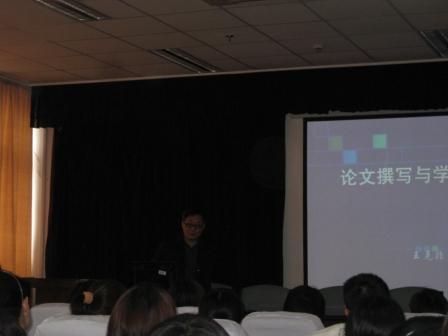 2012412,北京外国语大学中国外语教育研究中心常务副主任、《外语教学与研究》主编、博士生导师、王克非教授应邀来访讲学。语言研究院赵蓉晖教授与王教授就学科发展与科研工作进行了深入的交流。412下午,王克非教授在图书馆报告厅以“论文写作与学刊评审”为题作了2个多小时的讲座,许余龙教授担任讲座的主持人。王克非教授首先以学术论文写作的基本要求入题,对写作规范、论文选题、资料收集、写作方法以及学术刊物评审要点等重要问题一一细致讲解。在讲座过程中,王教授不仅高屋建瓴,旁征博引,更能结合许国璋教授治学之道以及他自身的研究经历,将科学研究与个人学术发展等话题融为一体,娓娓道来,令人受益匪浅。王克非教授的讲座吸引了上外众多教师和研究生前来聆听,座无虚席。讲座结束之后,王教授还非常热心地回答了上外师生提出的问题,为大家答疑解惑。