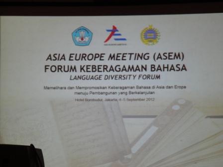 这是“亚欧会议”首次举办语言多样性专题论坛。论坛旨在对涉及多语制与语言多样性的相关问题进行交流和探讨,主要议题为“亚欧语言多样性政策及问题研究”、“保护与发展亚欧语言和文化多样性最佳实践交流”、“媒体与信息传播技术在维护与促进亚欧语言多样性中的作用”、“亚欧语言多样性保护及发展战略与经济可持续性发展的关系”。“亚欧会议语言多样性论坛”为语言文化领域的政府官员和专家学者提供了一个开放的平台。参加此次论坛的代表来自亚欧23个国家和国际组织,各国驻印度尼西亚大使馆的大使和参赞也应邀出席了论坛。印尼教育与文化部部长、印尼国家语委主任和欧盟委员会轮值主席在开幕式上发表了主旨演讲。中国、印度尼西亚、马来西亚、法国、菲律宾、泰国、保加利亚、英国、越南、澳大利亚、塞浦路斯、联合国教科文组织等国家和国际组织选派的代表分别在论坛上作了专题报告。