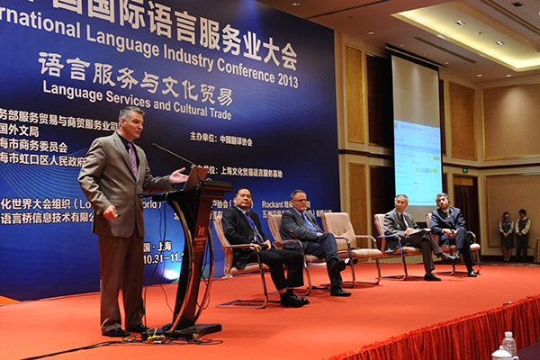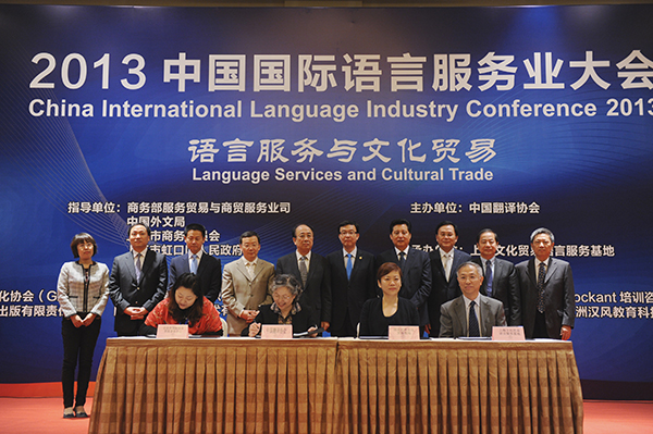 10月31日至11月1日,“2013中国国际语言服务业大会”(2013 China International Language Industry Conference)成功在沪举行。此次大会由中国翻译协会主办,上海文化贸易语言服务基地承办。第十一届全国政协常委、外事委员会主任、原国务院新闻办主任赵启正,上海市副市长周波,商务部服务贸易和商贸服务业司副司长吕继坚,中国译协第一常务副会长、中国外文局常务副局长郭晓勇,上海市虹口区区委书记吴清等领导和嘉宾出席大会。
