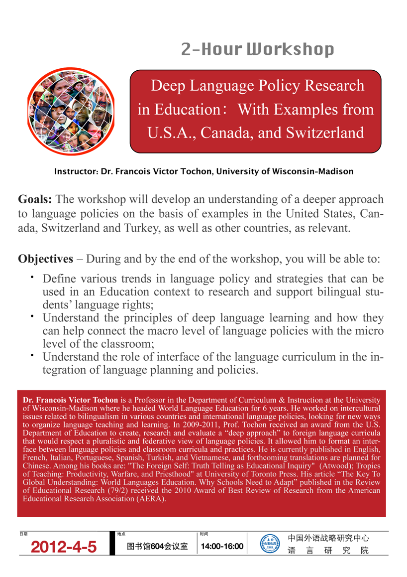 【4月5日】Dr. Francois Victor Tochon:Deep Language Policy Research in Education
