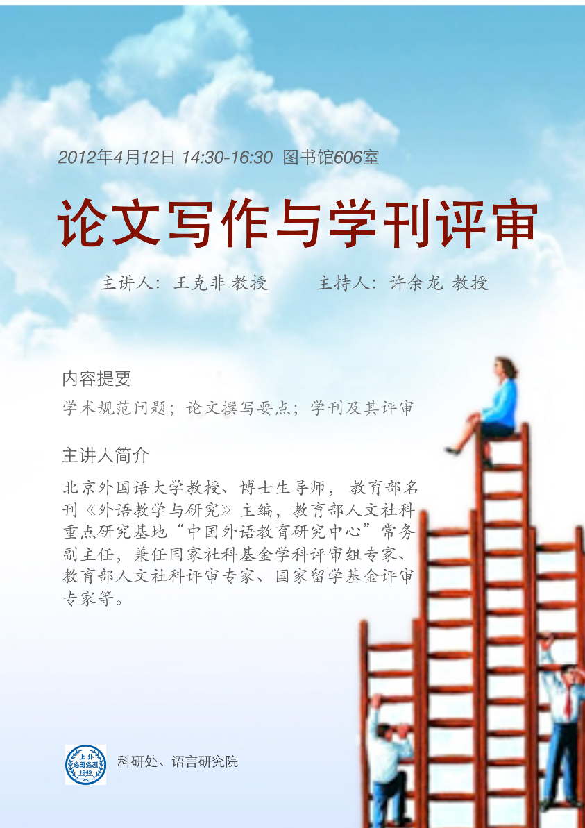 【4月12日】王克非:论文写作与学刊评审