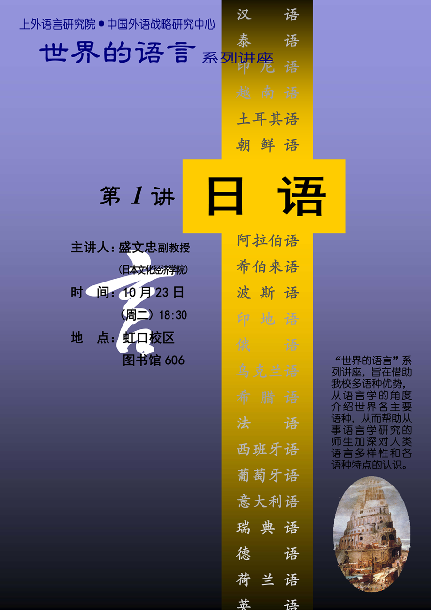 “世界的语言”系列讲座,旨在借助我校多语种优势,从语言学的角度介绍世界各主要语种,从而帮助从事语言学研究的师生加深对人类语言多样性和各语种特点的认识。欢迎各位老师同学前来参加!
