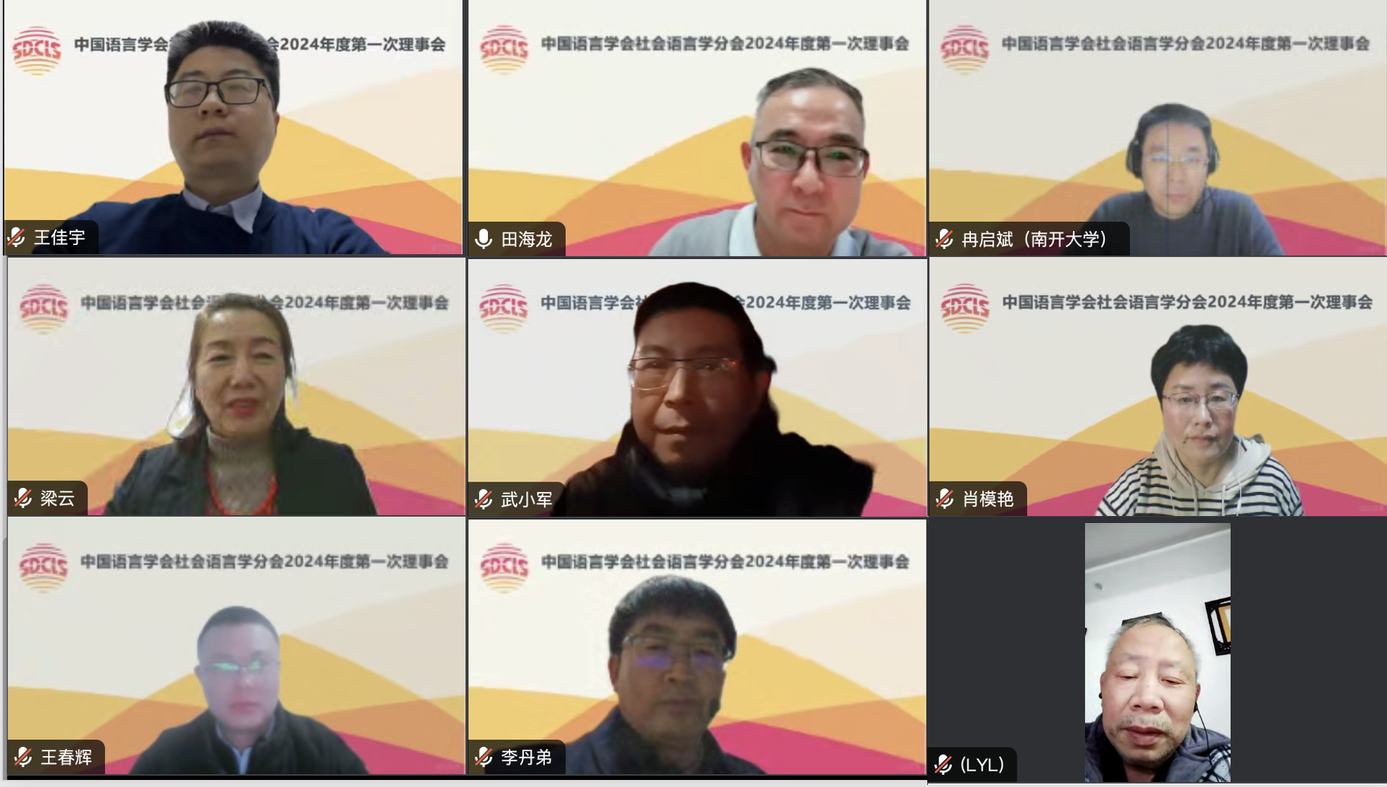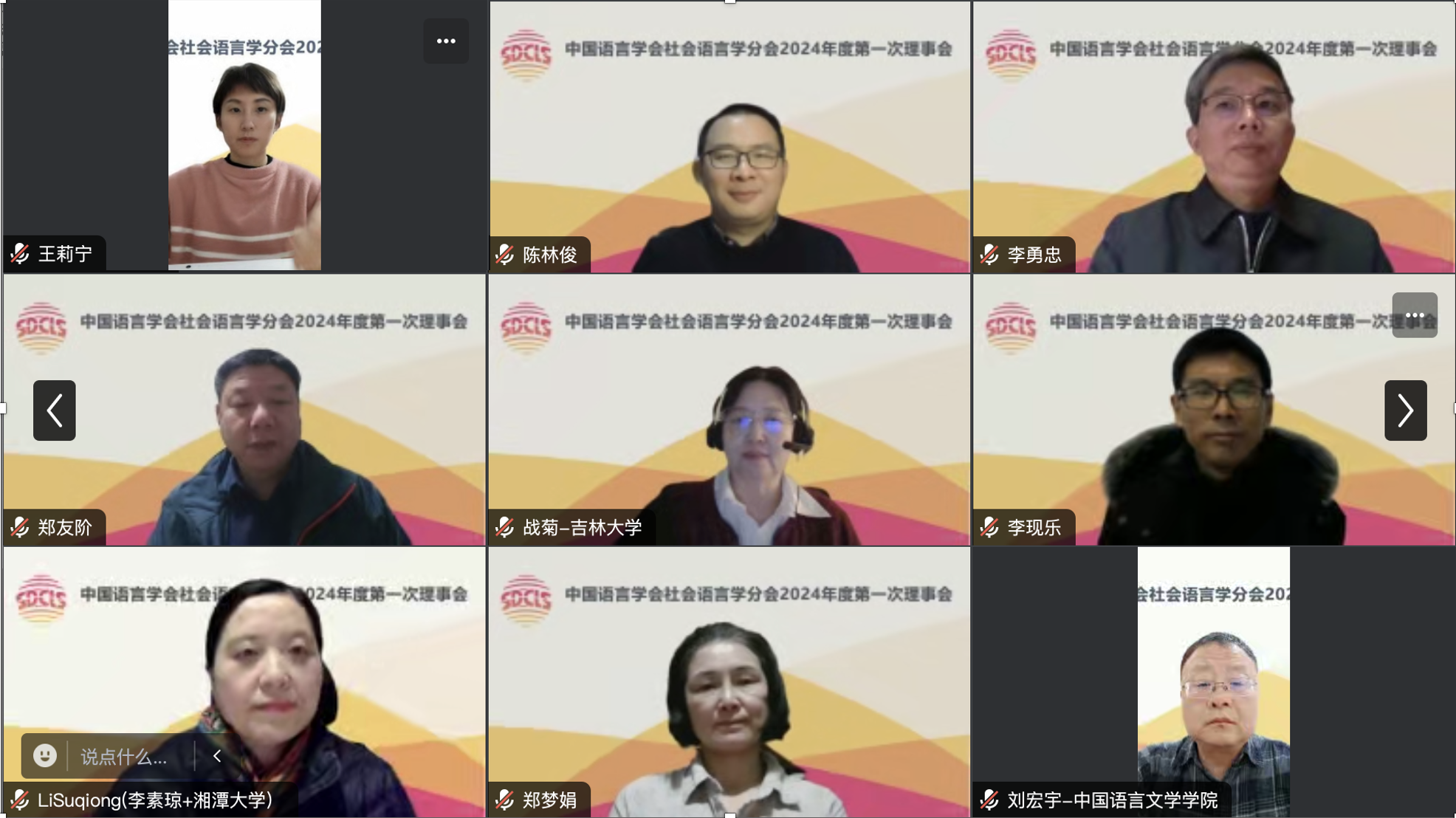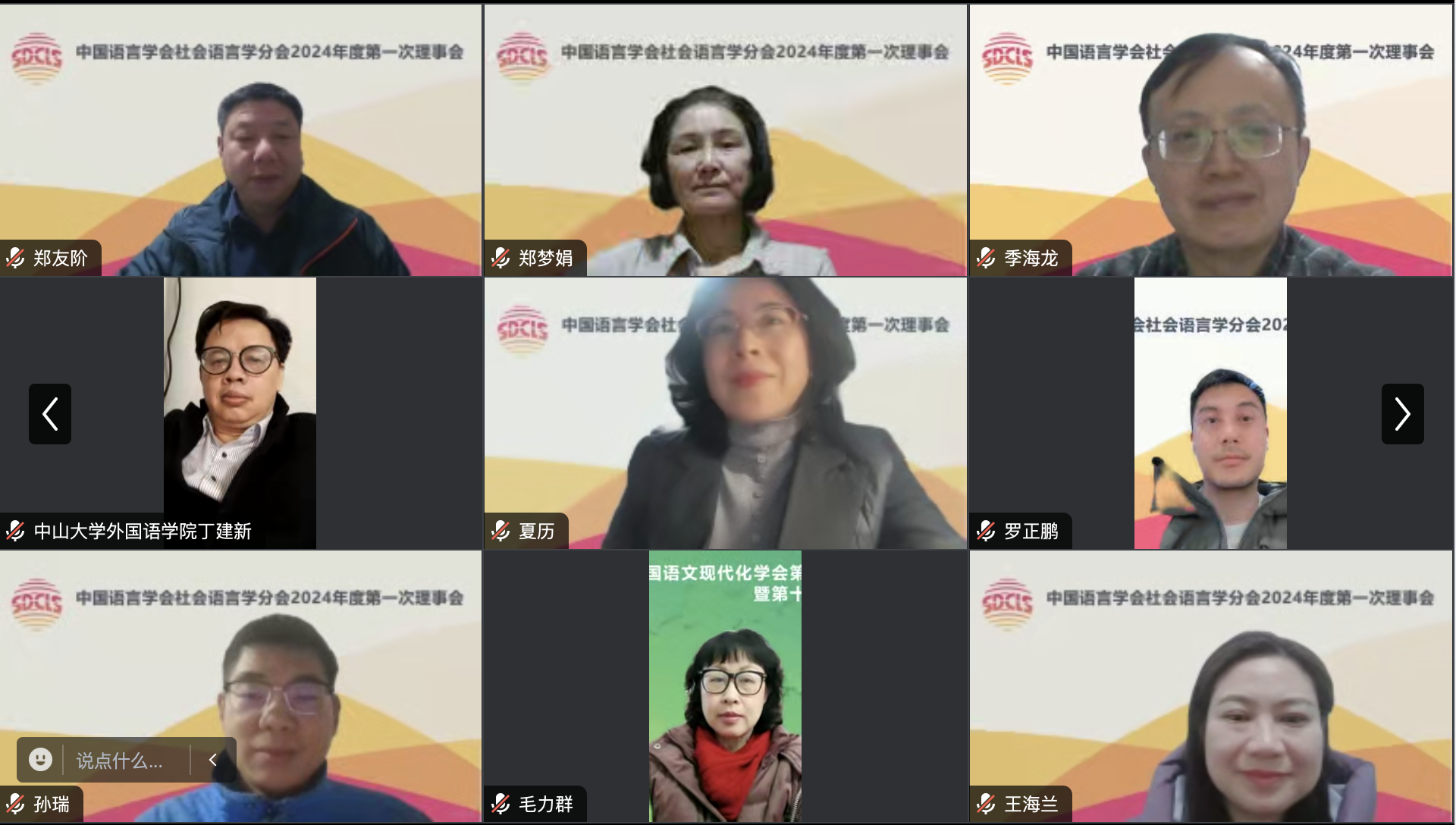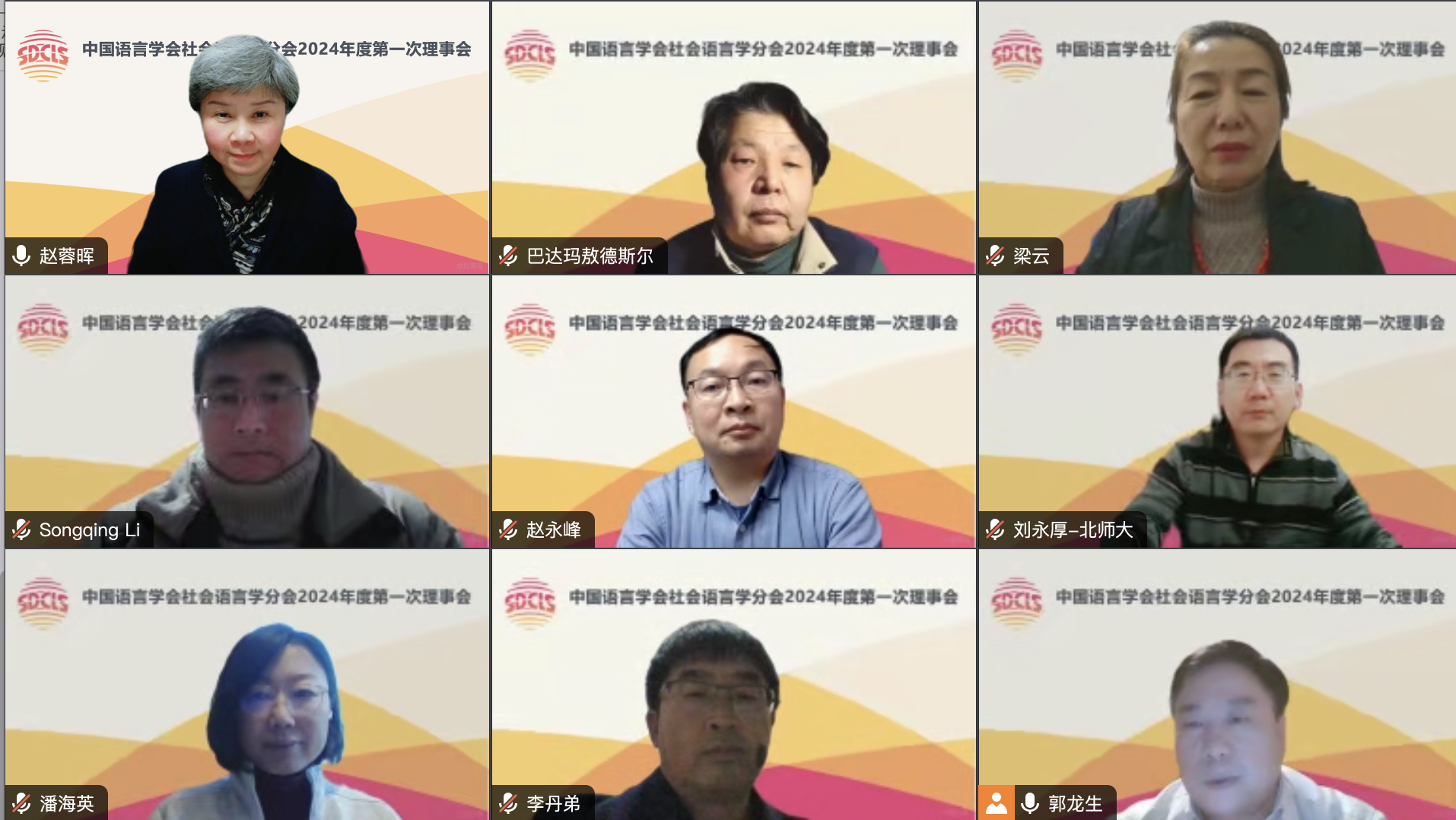 2024年2月7日,中国语言学会社会语言学分会在线召开2024年度第一次理事会,分会名誉会长田海龙、会长赵蓉晖、副会长汪磊、梁云、郭龙生、潘海英、丁建新、赵永峰,以及60余名理事、特邀代表参会。会议由分会副会长兼秘书长郭龙生主持。