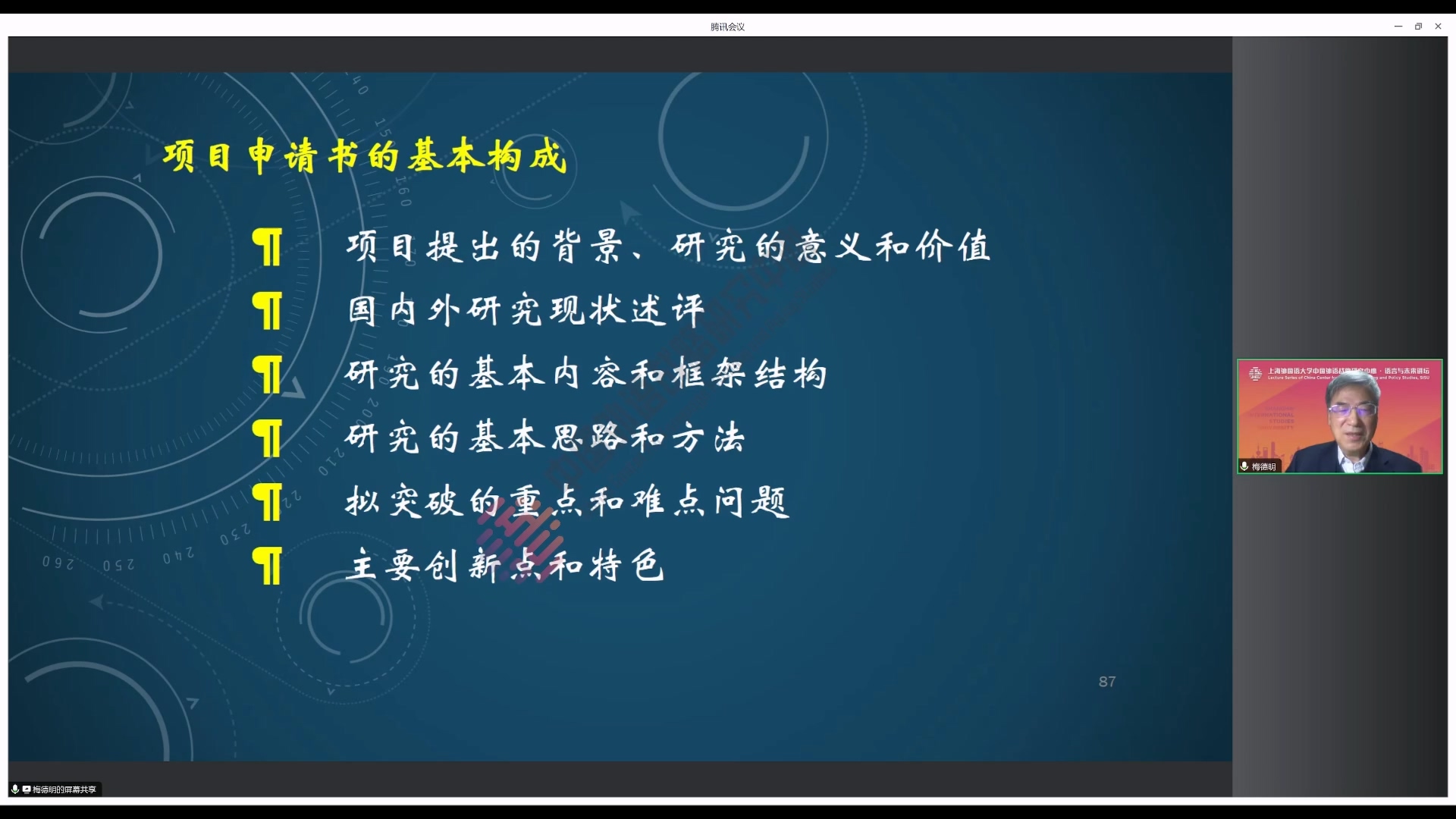 在讲座中,梅德明教授由党的二十大报告中“坚定文化自信,坚守中华文化立场”这一要求引入,首先介绍了课题研究者的使命与担当,即“尺寸教材,国之大者;教材建设,国家事权”,提出研究团队站位要高、方向要明、目标要准。接着,梅教授介绍了教材建设的根本遵循,应紧紧围绕立德树人根本任务,弘扬优良传统,用心打造培根铸魂、启智增慧的精品教材。最后,梅教授以与中华文化融入相关的优秀项目为例,着重介绍了项目申报和课题研究的基本构成,包括研究的基本内容、框架结构、基本思路和方法,拟突破的重点和难点问题等等,强调项目申请人及其研究团队应树立问题导向、目标导向和创新导向的课题意识,促进中华文化在外语教材中的有效融入与呈现,讲好中国故事。