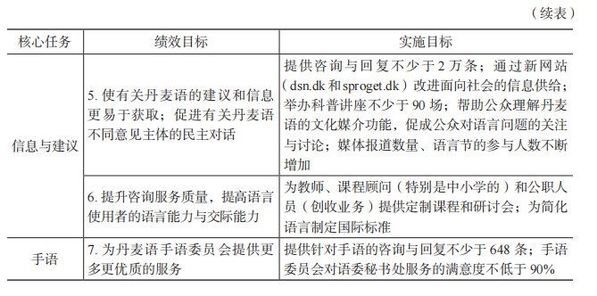 在《协议》的附件中,丹麦语委明确了2021—2024年的工作规划,具体包括任务与使命、愿景与战略方向、各类工作的绩效目标与实施目标等,完整展现了该机构的工作内容和可能取得的工作成果。其中,愿景、任务与使命与《协议》正文所述一致,在此不做赘述。