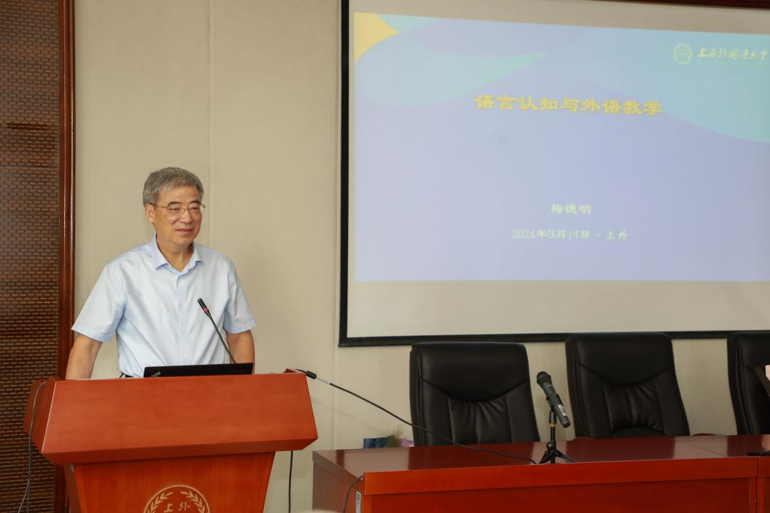 梅德明教授以“语言认知与外语教学”为题,在阐释自然语言的本质和人类认知规律的基础上,探讨了语言学习的本质和外语教学的方法。报告认为,知识的本质是简约的形态和深邃的道理;学习的本质是感知、获取和运用知识和技能,形成思想、态度和价值观;学习的过程是体验、成长和改变的过程。报告从理念与实践的辩证统一视角审视当下的外语教学倡导英语教学的整体观念和辩证方法。英语教学活动以学习为中心,以学生为主体,以教师为引导,以学生核心素养发展为旨归,体现外语课程的工具性价值和人文性价值,体现外语学习的综合性、成长性、实践性特点,体现语言素养和通用素养综合发展的关联和统一。梅德明教授选用了中国经典哲学论述、诗词为例,讲述了具有中国传统文化特色的语言观及其对当下外语教学研究的影响,引发了与会学者们的深入思考与共鸣。